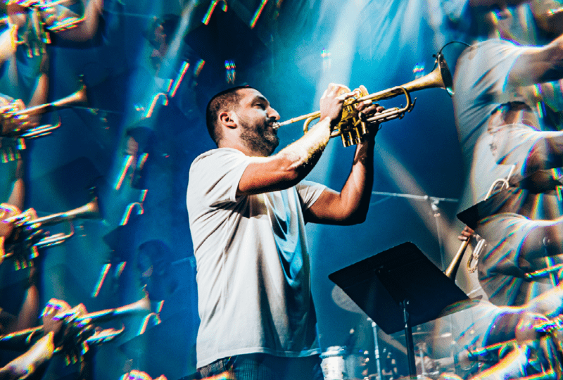 After a Grammy nomination, several jazz albums, a hip-hop record and a Special Christmas show, Ibrahim Maalouf sets out again to conquer unexplored territories. For his latest live project “Time X”, the experimental jazz trumpeter mixes instrumental jazz with captivating electronic music. In 2022, the star musician was already rocking a sold-out De Roma with his delicious Latin vibes. This year, on December 19, 2024, he once again promises a thrilling club night for everyone who loves to dance. In other words: Ibrahim Maalouf’s jazz show is to be experienced live!